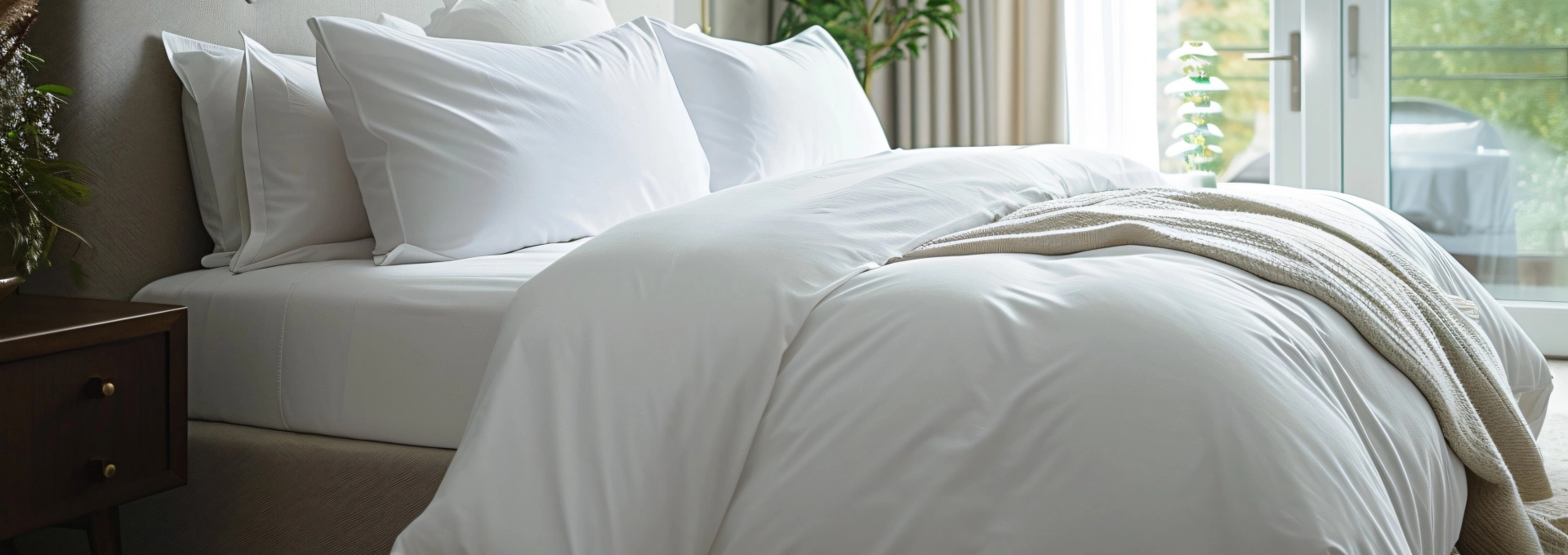 Pour une option plus luxueuse, le satin de coton offre une surface lisse et soyeuse qui glisse agréablement sur la peau. Il est souvent choisi pour les couettes haut de gamme en raison de son aspect élégant et de son toucher doux.